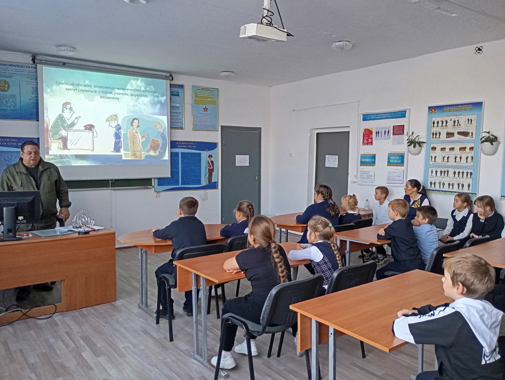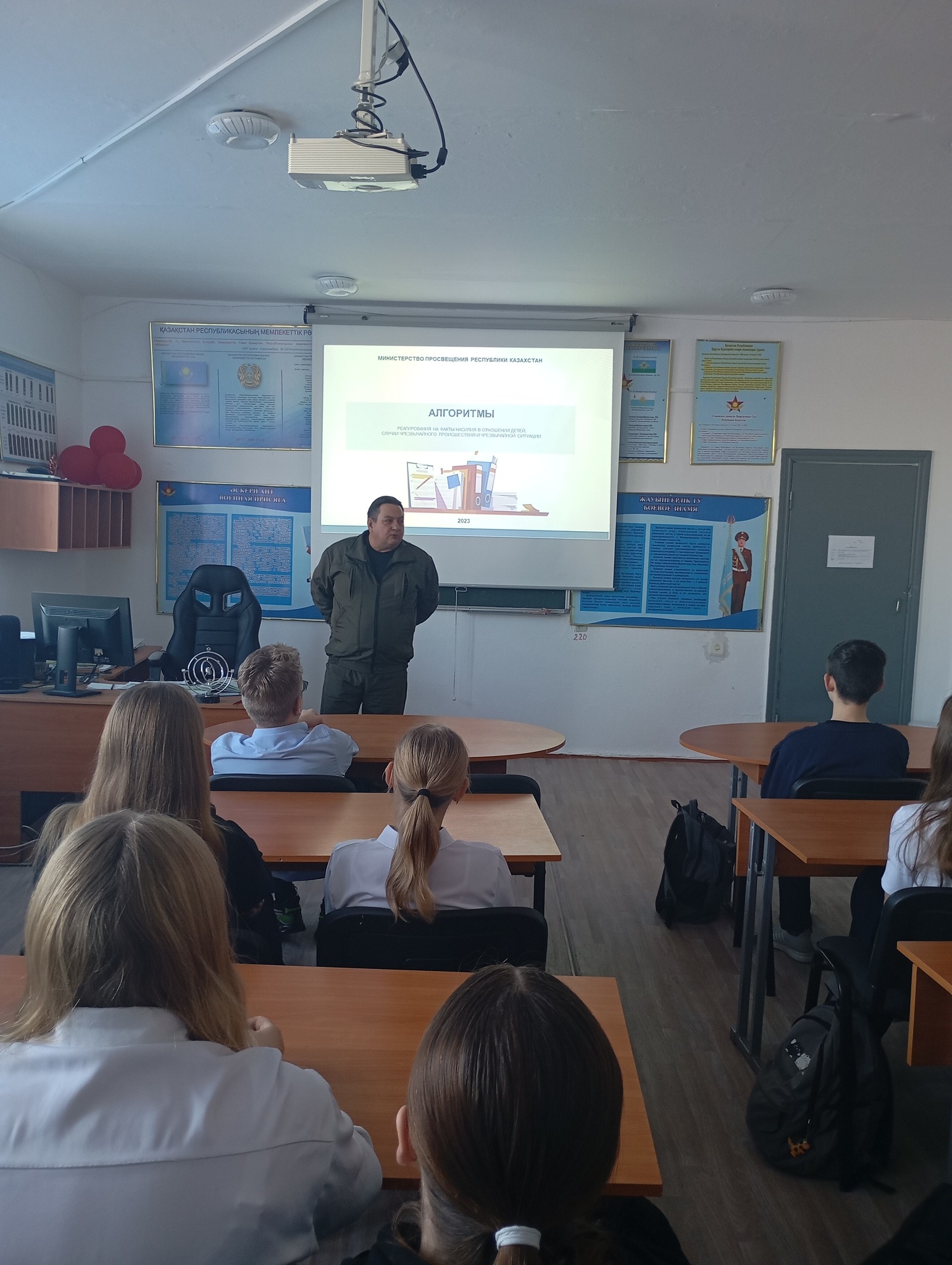 «Казанка жалпы орта білім беретін мектебінде» КММ алғашқы әскери және технологиялық дайындық пәнінің мұғалімі 1–11 сынып оқушылары арасында балалардың қауіпсіздігі мен денсаулығын сақтау мәселелері бойынша нұсқаулық өткізіп, төтенше жағдайлар кезіндегі іс-әрекет ережелері бойынша түсіндіру жұмыстарын жүргізді.