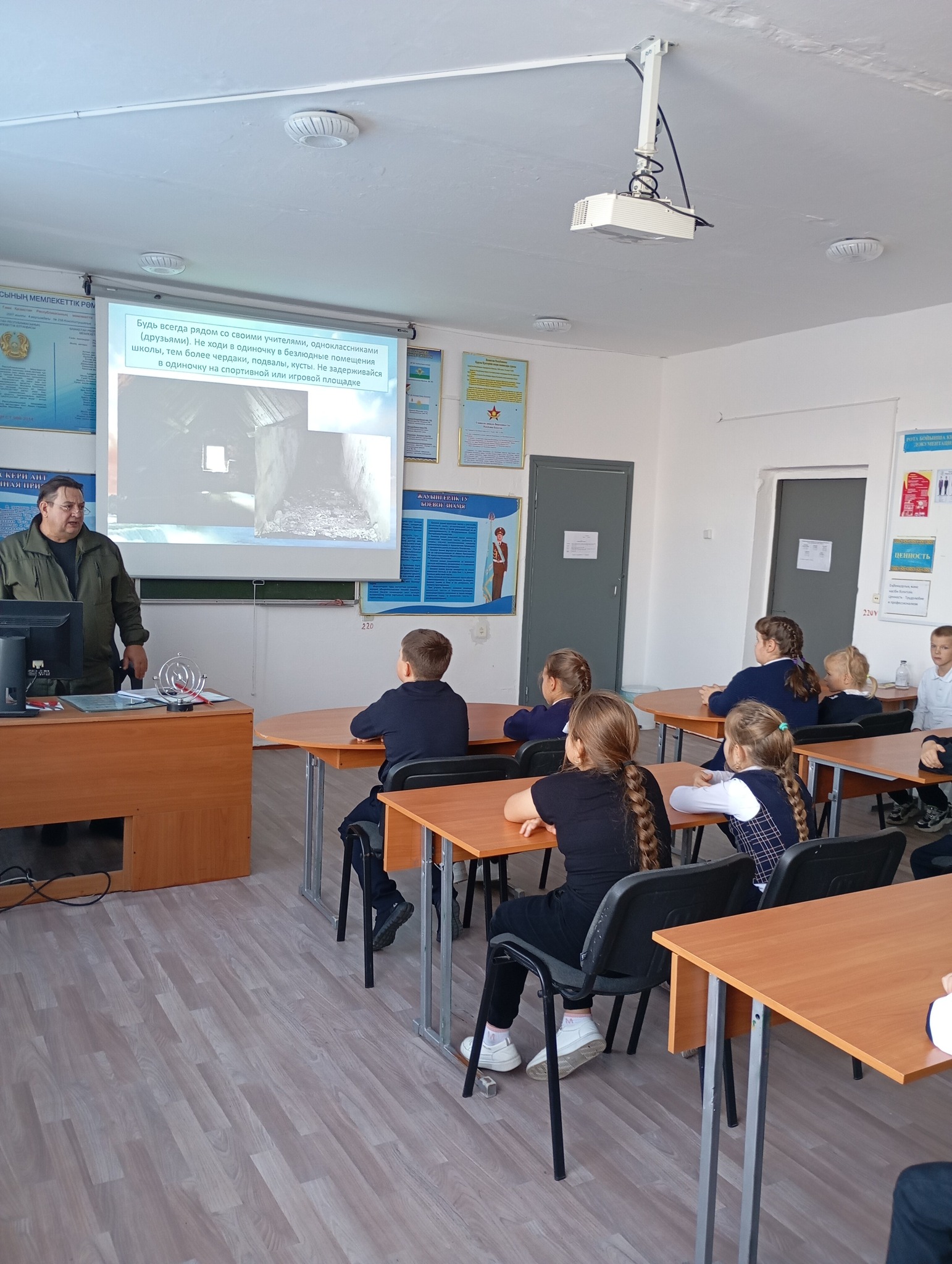 «Казанка жалпы орта білім беретін мектебінде» КММ алғашқы әскери және технологиялық дайындық пәнінің мұғалімі 1–11 сынып оқушылары арасында балалардың қауіпсіздігі мен денсаулығын сақтау мәселелері бойынша нұсқаулық өткізіп, төтенше жағдайлар кезіндегі іс-әрекет ережелері бойынша түсіндіру жұмыстарын жүргізді.