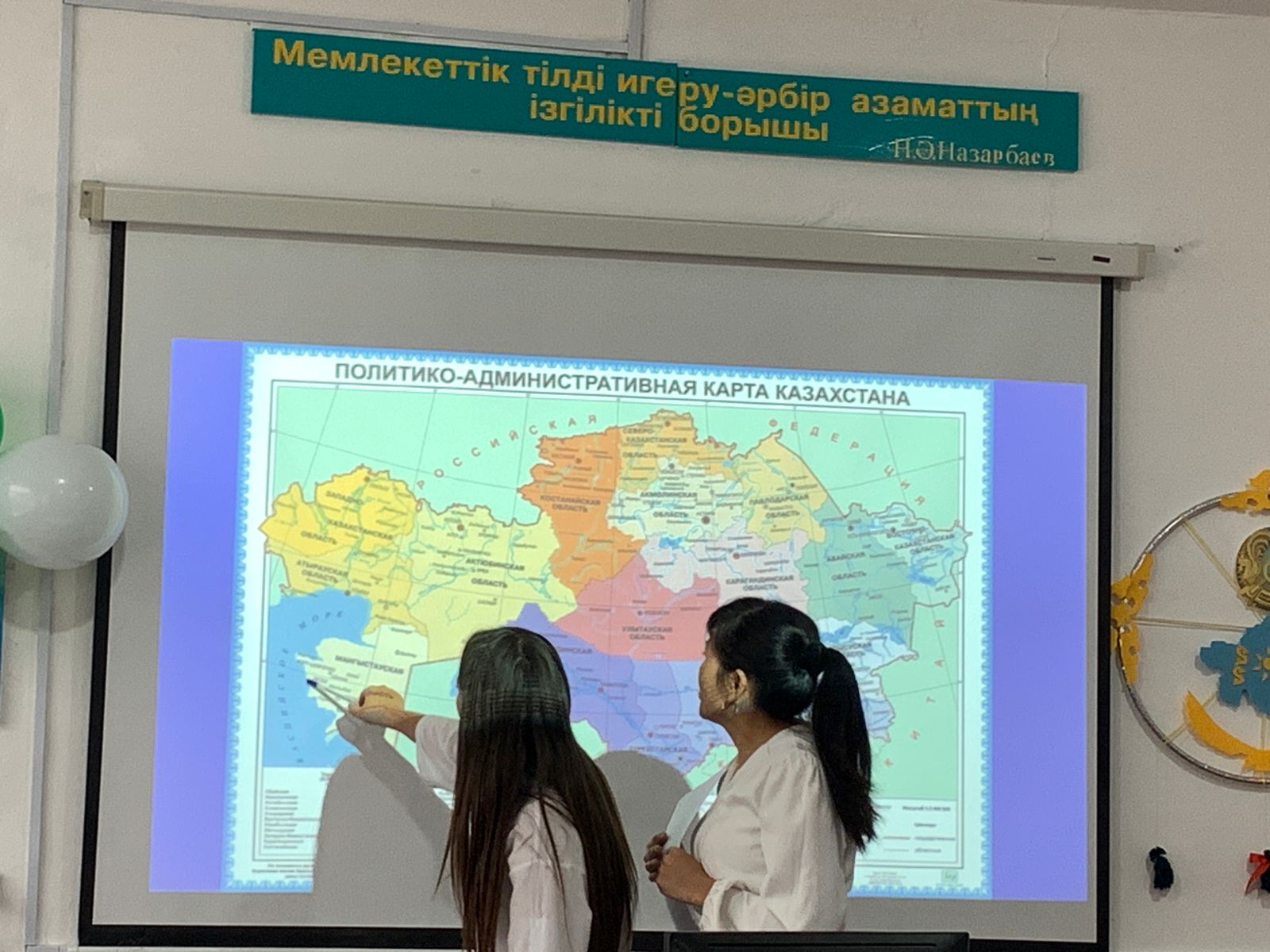 Оқушылар топпен жұмыс жасап, қазақ және орыс тілдерінде өлеңдер оқыды, қалаларды тапты, мәтіндерді аударды, синквейндер құрастырды, ал «Кеше және бүгін» ойынында Қазақстанның бұрынғы және бүгінгі күнімен салыстырды.