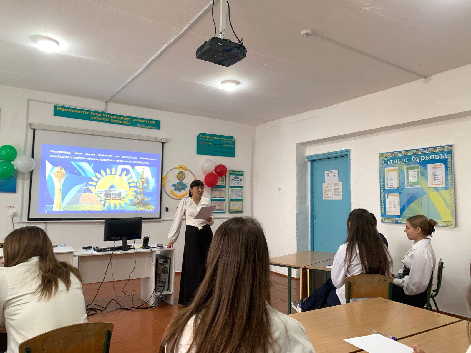 Республика күні қарсаңында «Республика – біздің мақтанышымыз» атты патриоттық сынып сағаты өтті. Іс-шараның мақсаты: Отанға деген сүйіспеншілікті, оның тарихы мен жетістіктеріне құрмет сезімін тәрбиелеу.